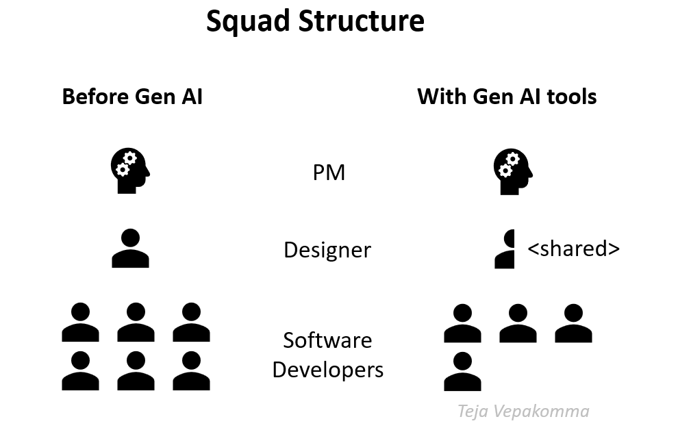 How should Product Squads be structured given that Software Engineers and Designers are more productive with Generative AI tools? Read on..